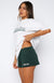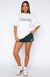 Vibe check! Our Brand New Start Lounge Shorts in Forest Green meets the cute and cosy brief. Designed with a semi-thick elasticated waistband. soft fleece lining. internal drawstring waist tie and side pockets. These relaxed shorts are finished off with printed White Fox text at the front side. Pair with the matching Brand New Start Off Shoulder Sweater for the perfect study fit!